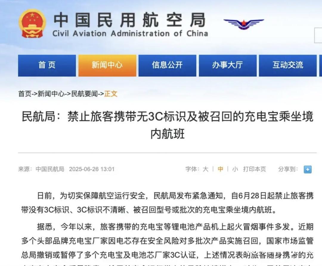 此外,6月28日起,民航局宣布无3C认证或璀璨不清的充电宝辞谢登机,被调回型号一律阻难。当中触及的品牌型号,不啻安克革命、罗马仕。