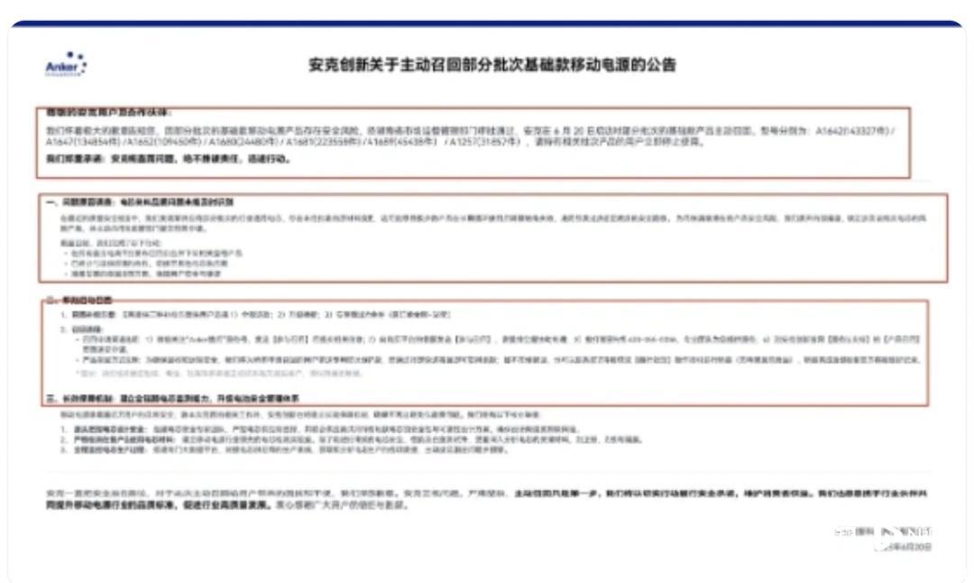 6月上旬安克革命在好意思调回充电宝,中好意思调回的家具型号不同